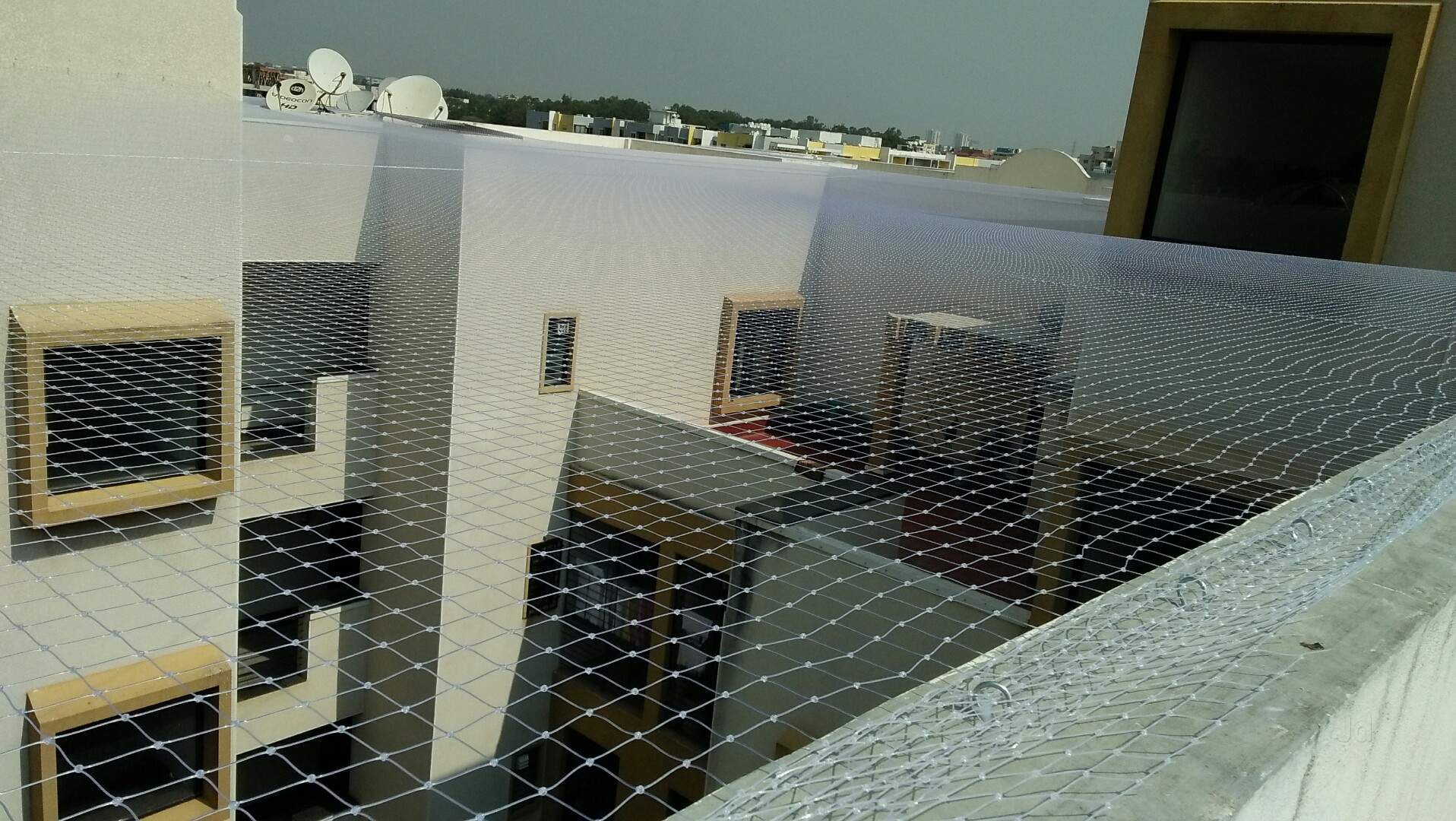 We are expertisation in fixing Glass Building Safety Nets, Which protect the outside glass. Glass Building Nets are used mainly 2 purposes